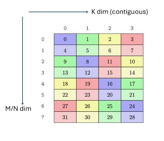 Please note that each number corresponds to a 128-byte chunk (or correspondingly, 8 packed bf16 elements).